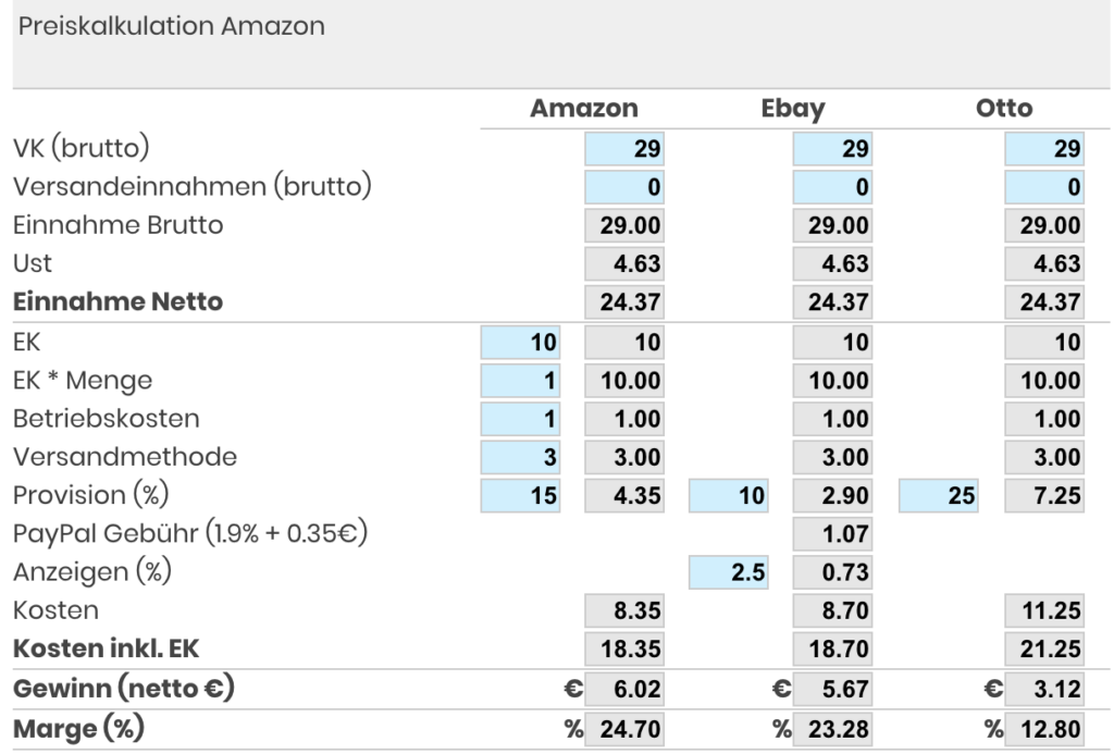 Möchtest du deine genauen Margen für dein Amazon FBA Produkt finden? Dann bist du hier genau richtig! Der Verkaufspreis sowie die Margen eines Produkts sind enorm wichtig. Egal ob für dich als Verkäufer, oder für den Kunden. Er entscheidet darüber, ob du einen Gewinn erzielst, oder Verluste machst, der Kunde sich für dein Produkt entscheidet, oder für das des Mitbewerbers. Damit du dich für einen Preis entscheiden kannst, brauchst du eine möglichst gute Entscheidungsgrundlage – und genau die kannst du dir mit unserer kostenlosen Preiskalkulationstabelle berechnen.